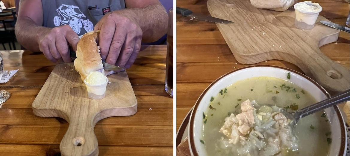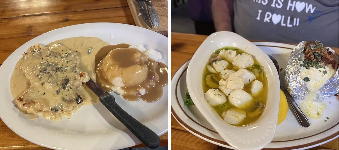 We went for dinner as a group of 14 without a reservation. Service was wonderful. Fast, efficient and friendly. Delicious soft fresh bread to start. Chicken rice soup was fabulous! The meals was delicious! I had the chicken Marsala with mashed potatoes and it’s the first time I have had the choice of three types of gravy! It was great. My husband loved his sautéd scallops and they were perfect. Price was reasonable.